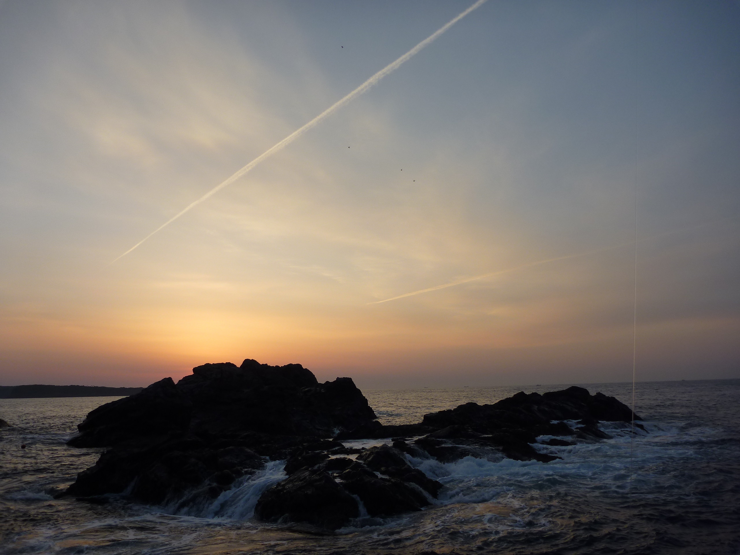 飛行機雲が走り何かイイ感じなので撮影してみました。