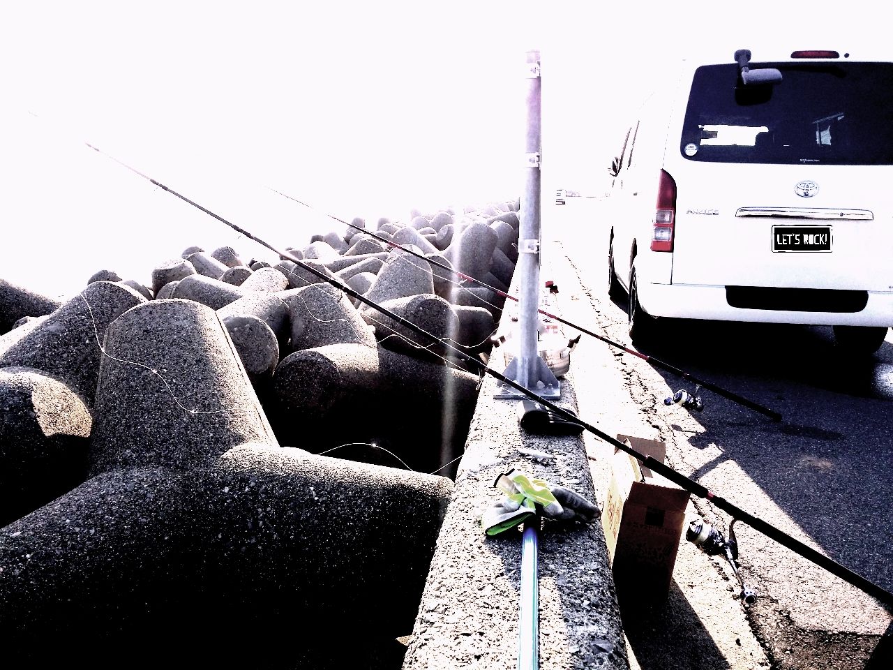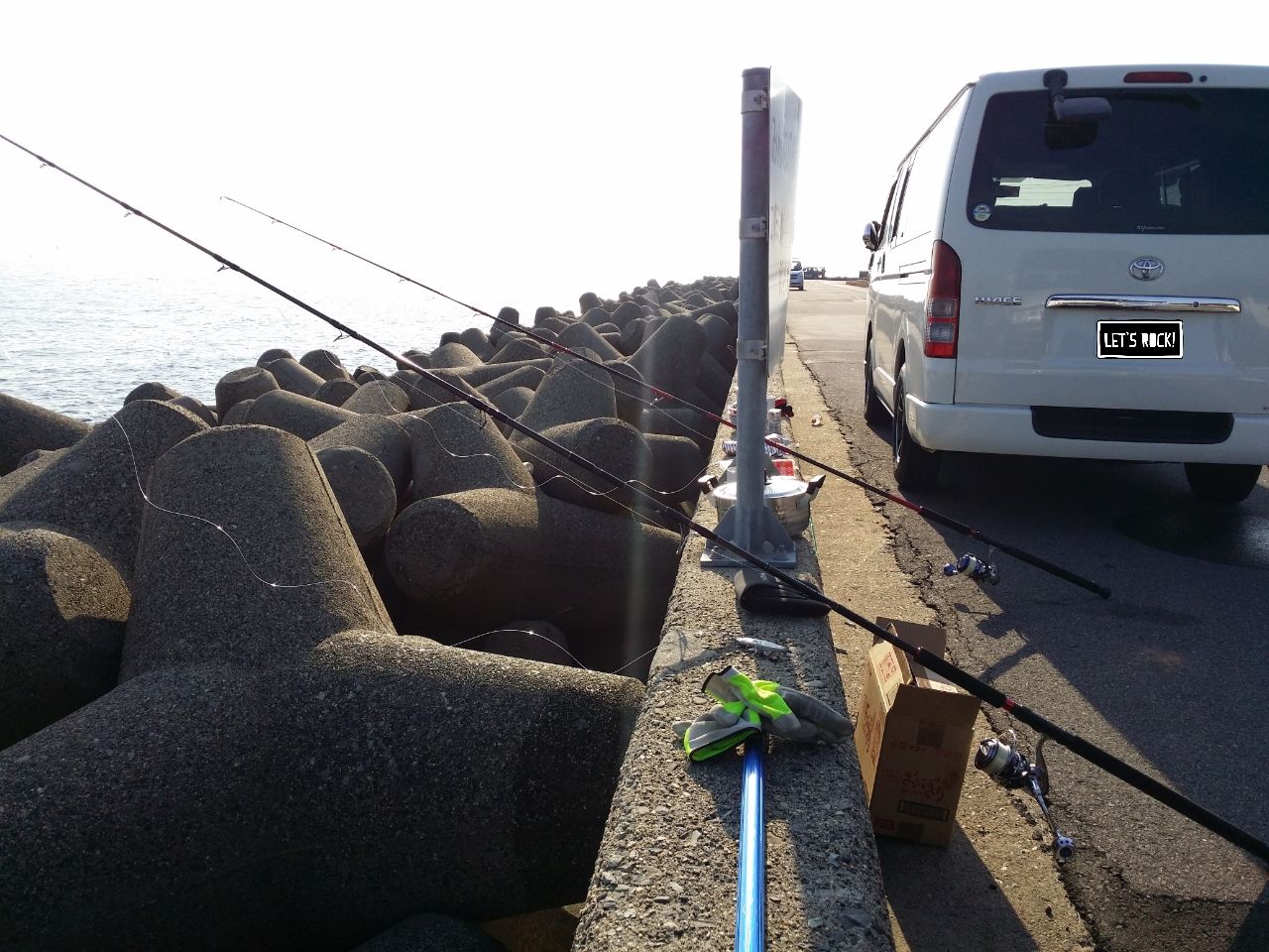 磯から上がり、漁港の一角に車を停めて休憩する。