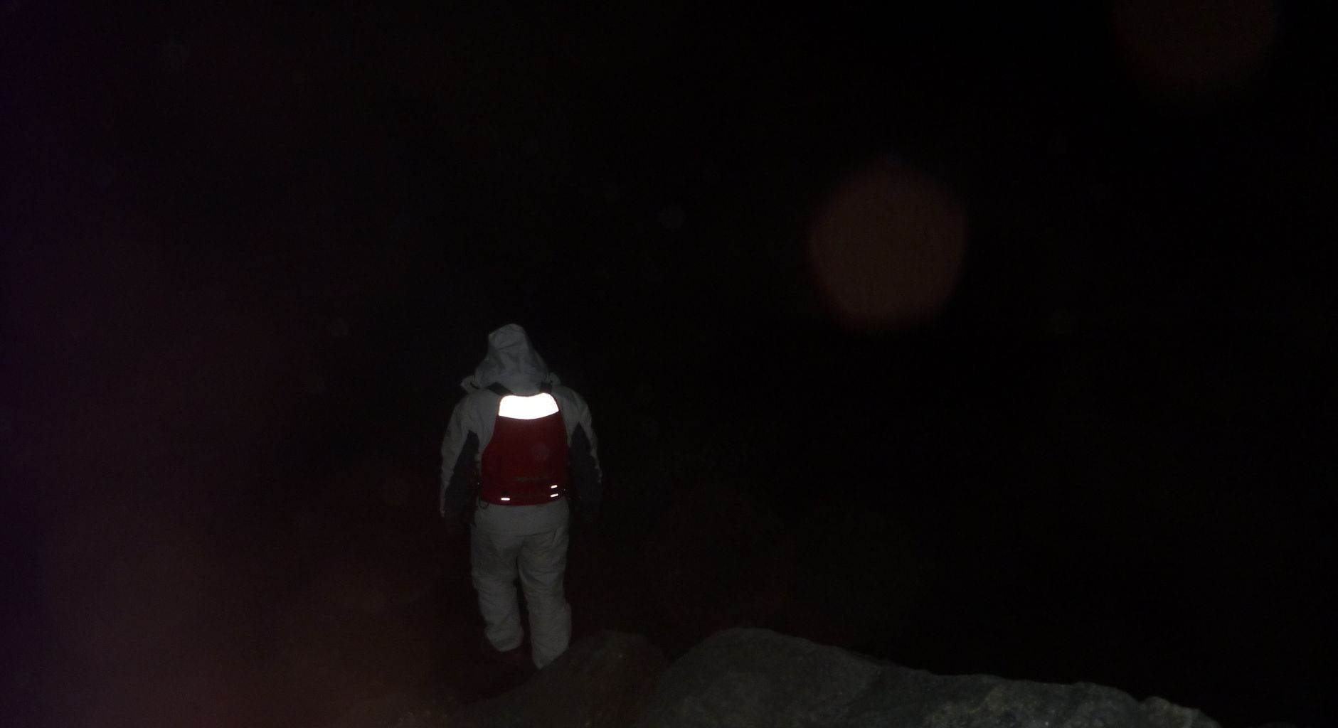 安心して磯を歩んでいくと、暗闇におもむろに人の気配を感じる。