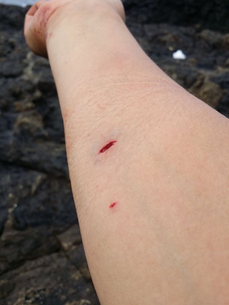 磯から上がり、病院で縫ってもらうか悩んだ。