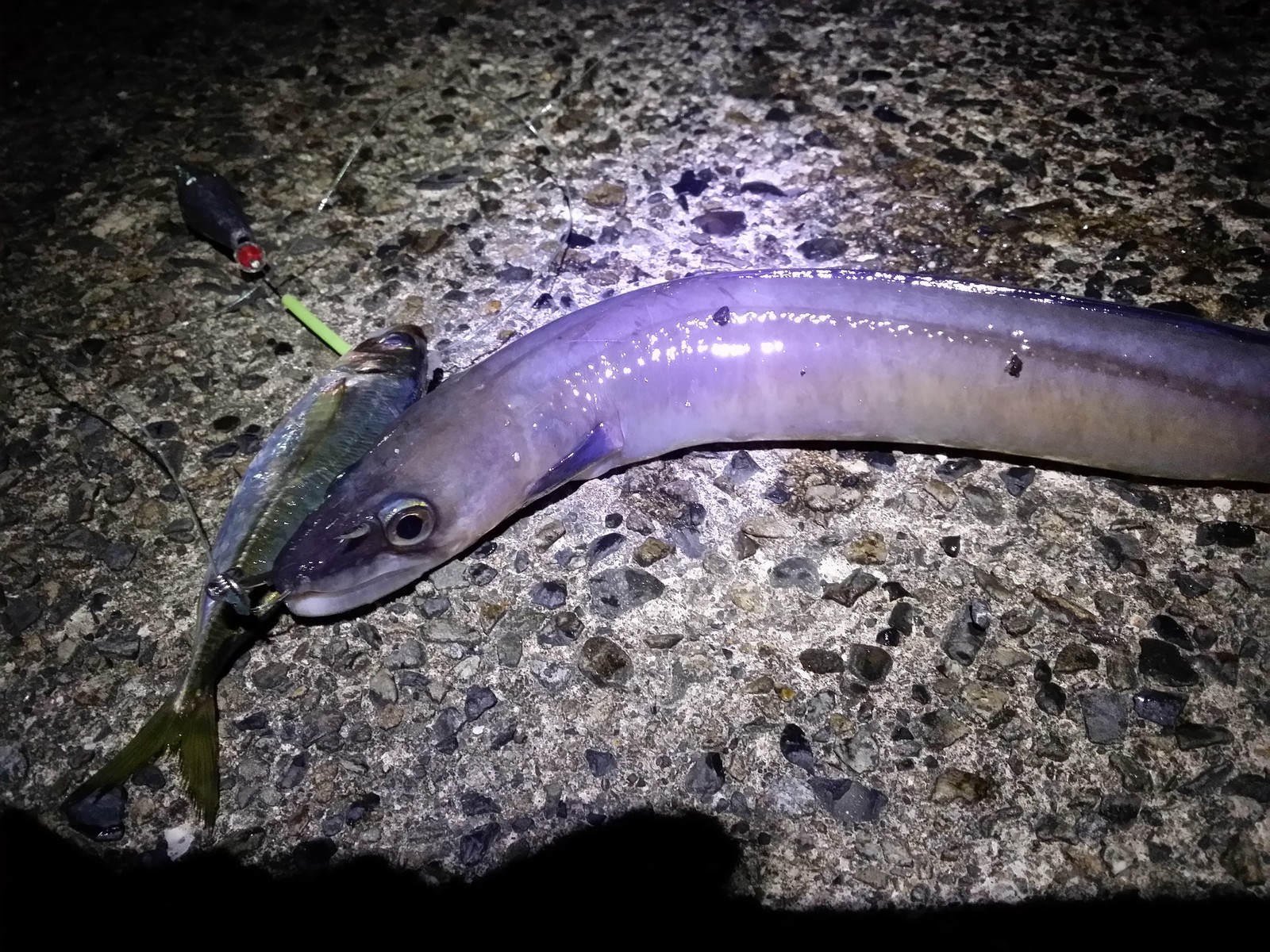 帰りに夜釣りをする。