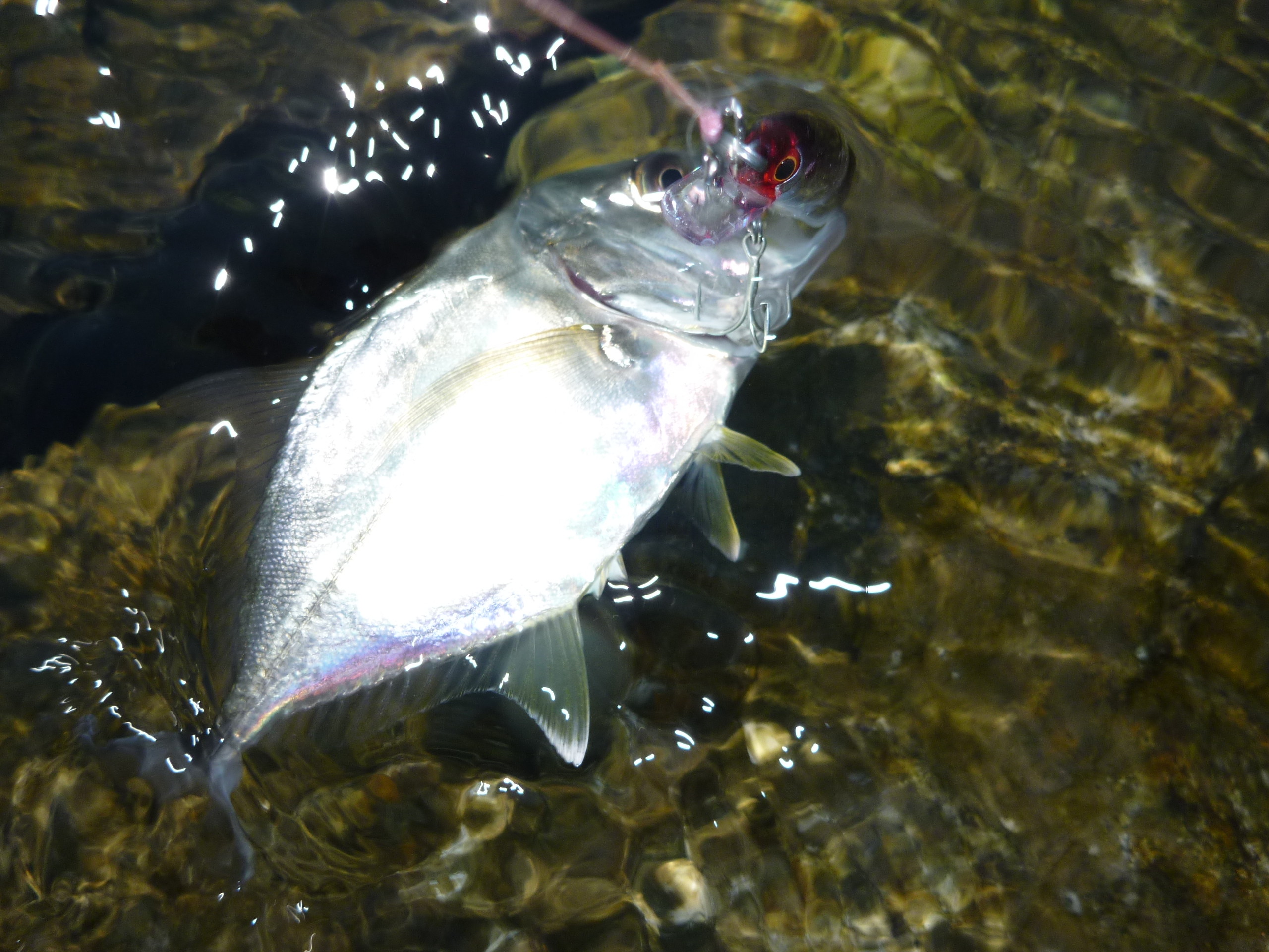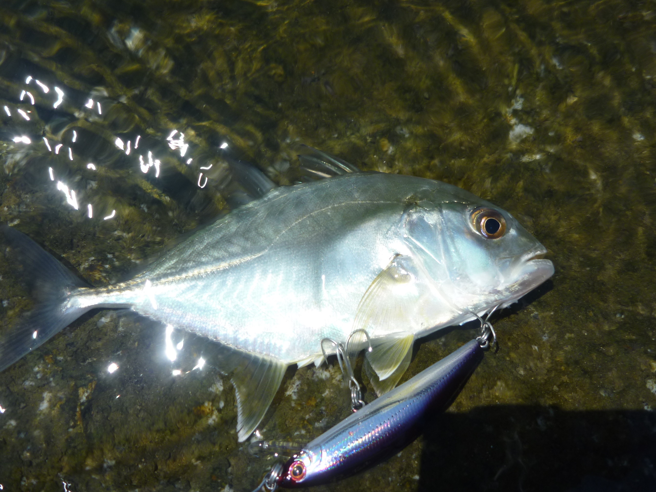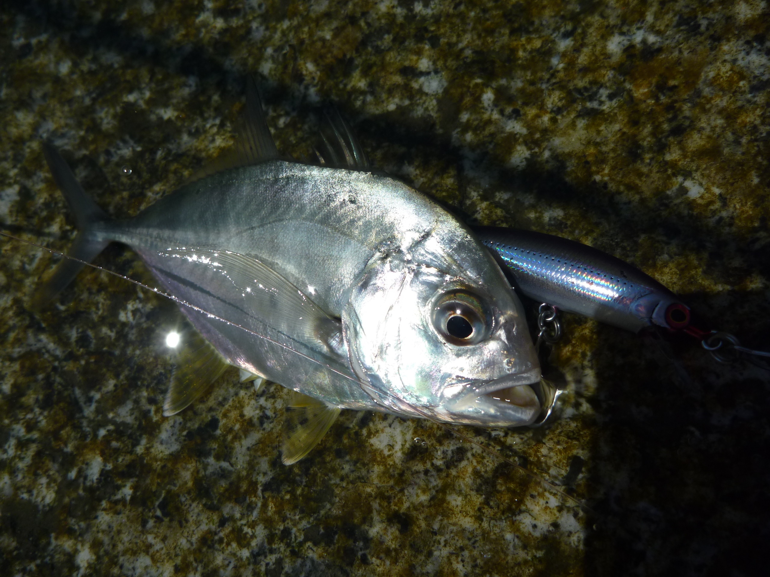 手元にあったピンテールの6グラム(爆)にかえて、エギングタックルそのままでキャストしてみる。